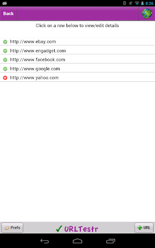 Enter your list of website addresses and URLTestr will continually test these addresses to ensure they are available. If at any time a connection failure occurs, URLTestr will alert you of this failure as well as logging the failed connection history of your websites.