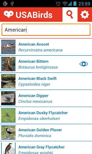 Bird watching app containing photos and information for over 340 birds that either live or have been spotted in the USA.