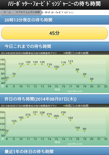 ユニバーサル・スタジオ・ジャパン(USJ)のアトラクションの待ち時間を簡単に見ることができるアプリです。