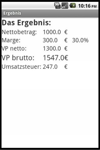 Eine einfache Applikation, um schnell Brutto, Netto und Marge auszurechnen. Ich wünsch euch viel Spaß.