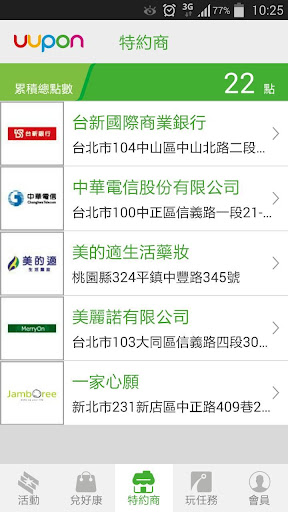 UUPON的合作特約商提供累兌點服務,並不定期舉辦專屬優惠活動,您也可以透過手機定位服務,找到臨近的特約商位置。