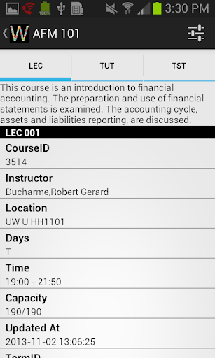 UWCourse is an Unofficial Android App used for students at University of Waterloo to easily get updated course schedules.