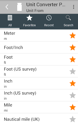 You will never get confused by the converter's abundance of features. Both conversion categories and conversion units can be marked as Favorites for a simplified display in the Favorites view. In the Favorites view, you will only see the categories and units you need. Alternatively, you can search for categories and/or units. Or you can find your category/unit in the list of the most recently accessed items.