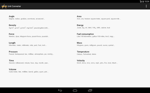 - Temperature (Celsius, Fahrenheit, Kelvin)