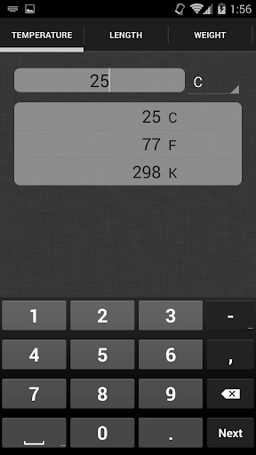 Unit Converter is an easy-to-use app with simplistic design and quick conversion functionality. Unlike most unit conversion apps that require user to specify input and output units Unit Converter only requires user to specify input unit, and all the other units are output (real time conversions).