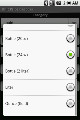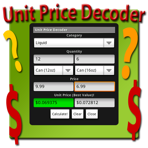With Unit Price Decoder, you can easily compare the unit price of two products to find the best value. Just type in quantity, price, and hit calculate! The decoder supports liquids (fluid ounce, liter, etc.), solids (ounce, pound, etc.), and generic comparison.