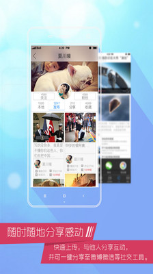 用户可随手拍视频,记录身边新鲜事,快速上传。在社区圈子内,第一时间与他人分享互动,获得其他用户的点赞、评论及关注,并可一键分享至微博微信等社交工具。