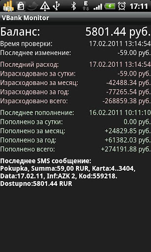 Это приложение позволяет следить за балансом банковских карт, обрабатывая SMS сообщения от банка. Разрабатывалось оно исключительно для себя, но решил и с народом поделиться. Основано на движке cluBalance.