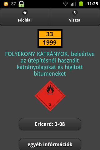 Az "UN szám és név alapján" történő kereséshez, továbbá ezen keresés találatainak megjelenítéséhez aktív internet kapcsolat szükséges!