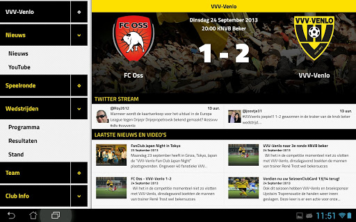 Leef mee naar de volgende wedstrijd met het laatste nieuws, video’s en interviews. Bekijk de wedstrijd live vanuit je luie stoel op je tablet of telefoon. Onderweg houden we je op de hoogte met video’s van de goals en het verloop van de wedstrijd. Ook na de wedstrijd kun je alle interviews en de samenvattingen nog eens nakijken. Alles over de club binnen handbereik.