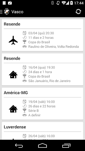 Mostra os dados das próximas partidas do Vasco e notifica uma hora antes do jogo, para você não perder nenhuma partida.