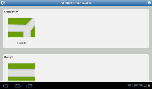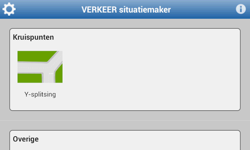 • In het hoofdscherm kan een type situatie, zoals een kruispunt, rotonde, enz gekozen worden. Ook kan er voor een interactieve kaart gekozen worden.