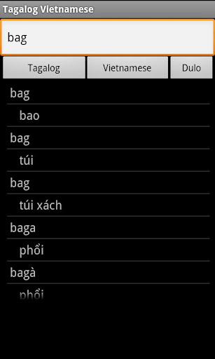 Tagalog Vietnamese Dictionary – travel dictionary to translate Tagalog to Vietnamese displaying a list of matching words. The dictionary also translates from Vietnamese to Tagalog. Copying a word from the translated list for a reverse translation can be used to find synonyms and to understand the broader use of the Vietnamese word in the Tagalog language. Although the Tagalog Vietnamese dictionary does not provide definitions or examples, the use of the translation software in this way provides you with a mechanism to better understand Vietnamese words in the Tagalog context without the need for definitions. 25K offline references.