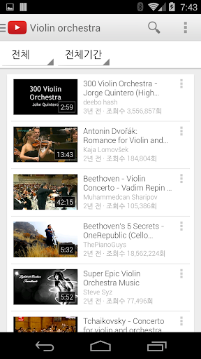 마지막으로 각 악기별로 유튜브 검색화면으로 갈 수 있습니다.