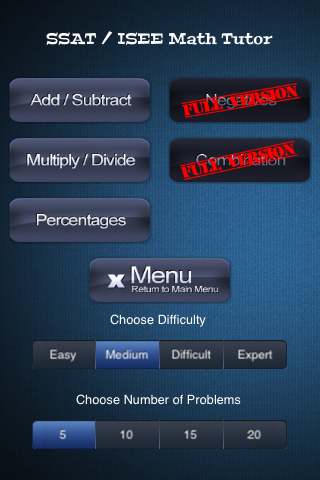 -Testing / Practice Mode: Complete a preset number of problems for practice, or used the time testing function