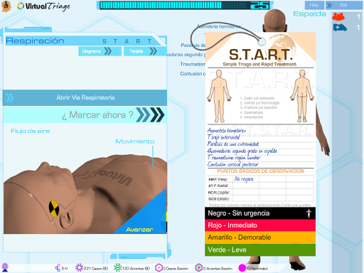 VirtualTriage es un programa diseñado para enseñar y practicar la clasificación de heridos en una catástrofe. Está destinado a todos los profesionales que intervienen en situaciones de emergencia: bomberos, médicos, técnicos en emergencias, enfermeros, policía, militares, etc.