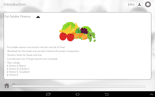 This app provides a quick summary of Vitamins via easy to grasp snack sized chapters: