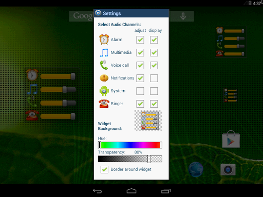 Also you can adjust border, hue and transparency of the widget's background to fit well your home screen theme.