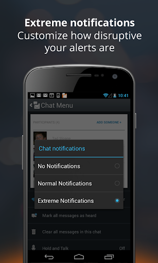 ● 即時中斷模式 – 離開應用時即時傳輸聊天,使用靜音按鈕回應
