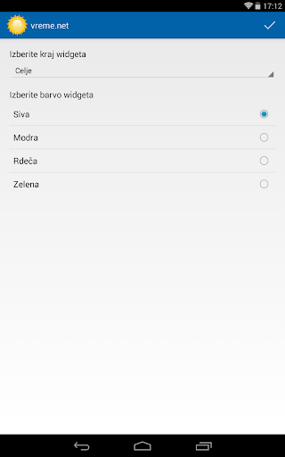 Z njo si lahko na namizje svoje mobilne naprave namestite widget, ki vam bo prikazoval aktualno vremensko napoved za izbran slovenski kraj.