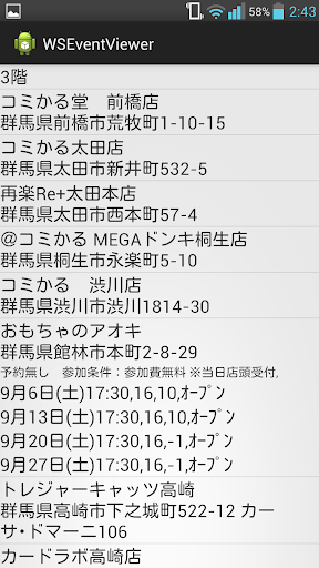 詳細の画面では、開催場所をクリックすると開催情報を表示します。