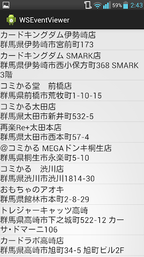 初期画面の上のSpinnerで都道府県を選択し、大会の名前をクリックすると、詳細の画面に飛びます。