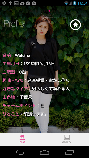 女性モデルのプロフィール写真と写真ギャラリーを閲覧できるアプリです。