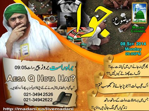 Madani Channel is an islamic channel which helps and guides you the true principles of Islam.It also teach you Sunnah of Rasool ALLAH (Peace Be Upon Him). It also offers online courses in Islamic studies and runs a television station.This Channel has been broadcasted by dawateislami.