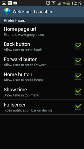Use this application if you want to lock your device to only show a spesific web page. Restart device for full effect.
