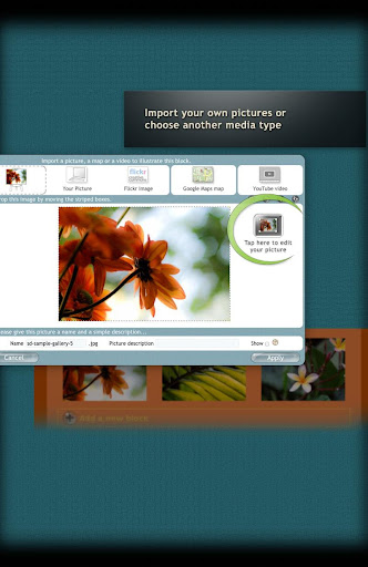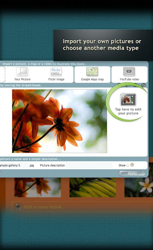 - Add photos, Flickr Images, YouTube videos, Facebook and Twitter like buttons, Google Maps …