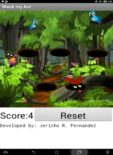 Whack my ant is an exciting game that entertains you very well. In able to get a score you must catch/tap the ant as fast as you can on the five holes. you must anticipate where the ant comes out.