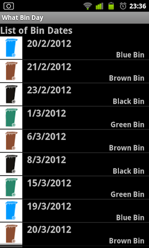 Glasgow Module for the "What Bin Day" App. Once you download this you need to download "What Bin Day" from the Android Market to make use of this. This will keep you informed of what bin needs to go out on what day.