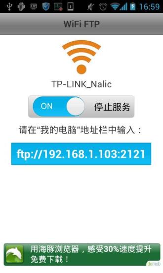 WiFi FTP一款可以让您的Android设备变成一个无线FTP服务器的软件,为您的Android手机、平板提供随时随地的无线文件分享服务。