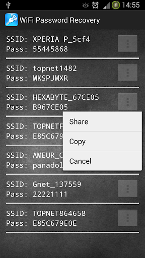 Use Wifi Password Recovery to list all WiFi passwords on your device, with just one click! Share with friends through SMS or email. Yes, just that easy!