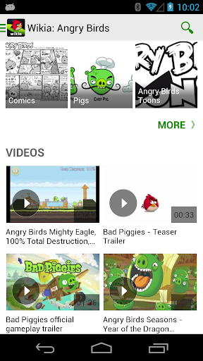 -Browsing: categories and articles created by Wikia’s Angry Birds community and rank them in trending order