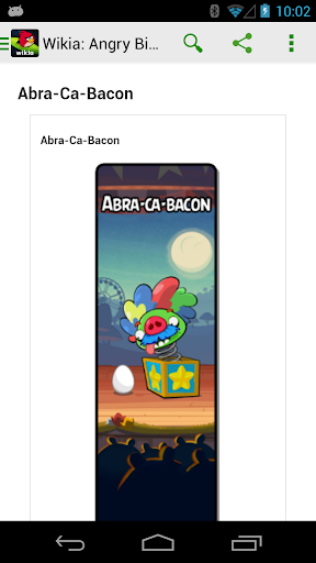 The superfan's guide to Angry Birds-created by fans, for fans. Wikia apps are always up-to-date with highly accurate, real-time information from Wikia’s vast fan community. The Angry Birds app features hundreds of pages of content created by fans just like you. Find in-depth articles on levels, enemies, TV series, game mechanics, episodes, guides and more! No other app offers this amount of accurate insights, tips and information with useful companion features such as: