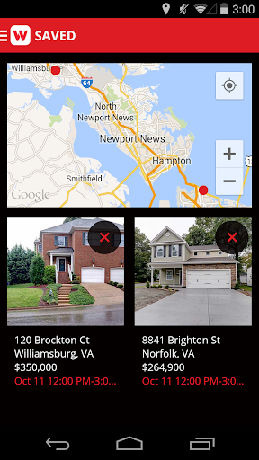 Saved keeps your bookmarked open houses all in one place. Tap the red bookmark icon on any open house listing to save it for later consideration, or to compare it to other saved open houses. Tap the bookmark again to un-save the property.