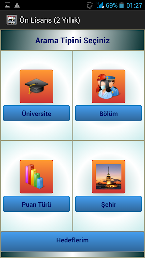 ÖSYM'nin 23.07.2014 tarihinde yayınladığı en güncel verilere göre bütün yüksek öğretim programlarını; üniversite bazında, bölüm bazında, puan türü bazında ve şehir bazında ayrı ayrı inceleyebilmenizi sağlayan uygulamadır. Üstelik dilediğiniz bölümün üzerine basarak uygulama içindeki Hedeflerim tablosuna üniversiteleri kaydedebilir ve hedeflediğiniz üniversite tercihlerinizi bu alandan kolayca takip edebilirsiniz. Böylece üniversite tercihlerinizi yaparken ayrı bir liste tutmanıza gerek kalmayacaktır.