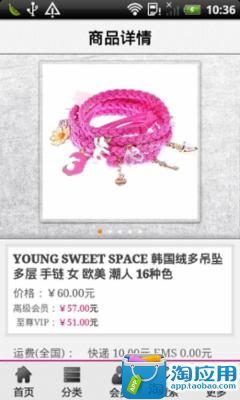 我们将产品实现销售终端化,减少下游产品销售环节所带来的高成本,将产品利润最大化返还给消费者。我们很坚持:坚持'时尚、品味、知性'品牌先导;坚持经典与创新;坚持为年轻热爱生活、追求时尚的职场白领女性设计;坚持快乐工作、舒适生活理念;坚持崭新、独立、时尚、自信、亲切近人的都市生活态度。更多精品店铺,敬请使用'悦淘街'http://apk.gfan.com/Product/App191542.html