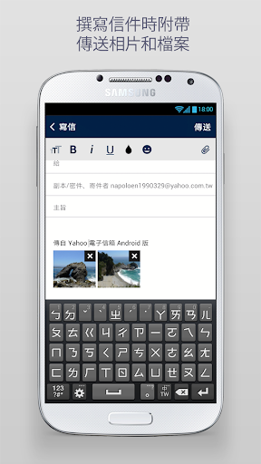 • 撰寫信件時還可傳送檔案、夾帶相片或拍攝新相片。