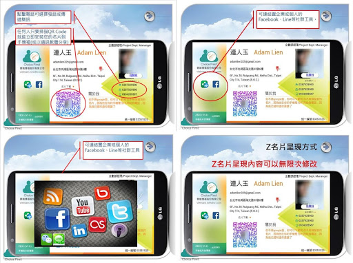 • 商務人士的最佳選擇,交換名片也可以輕鬆快速又環保,輕輕掃過QR Code名片立刻進入手機。