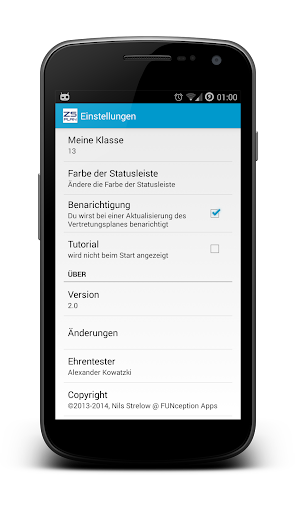 - Klasse wird in den Einstellungen festgelegt oder aus dem NavigationDrawer/Sidebar ausgewählt
