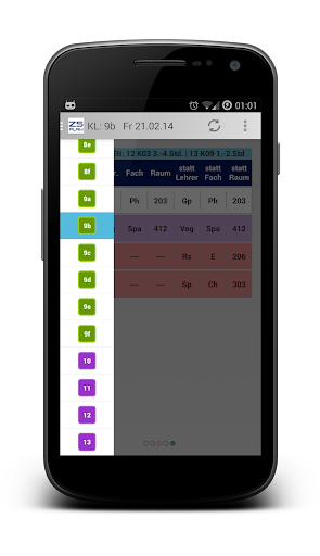 ZS-Plan bietet eine übersichtliche Gliederung nach Klassen(in der seitlichen herausziehbaren Leiste) und Tagen(Wechslen dieser durch Wischen nach links und rechts).