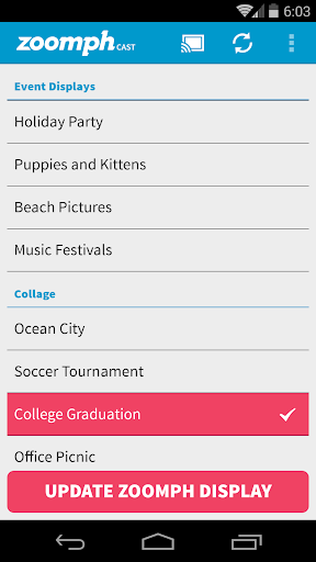 With the FREE Zoomph Cast app, you will seamlessly stream your own visual stories to any TV or screen—no browser required.