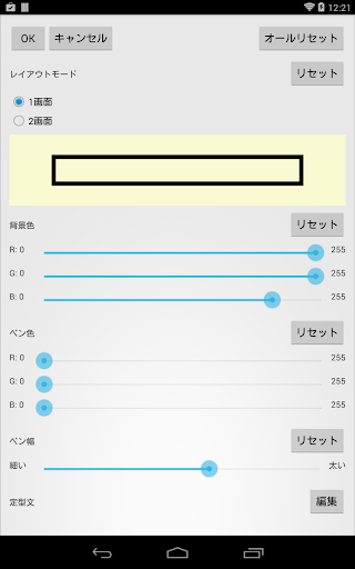 設定画面では、背景色、ペンの太さ・色を変更する事ができます。