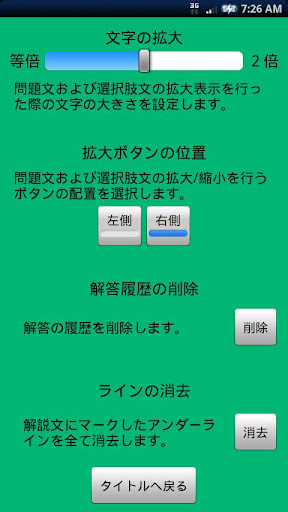 ・ 選択肢の枠のタッチ:左端タッチで前問題,右端タッチで次問題へ(タッチ機能)