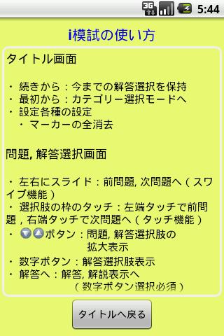 ・ 選択肢の枠のタッチ:左端タッチで前問題,右端タッチで次問題へ(タッチ機能)