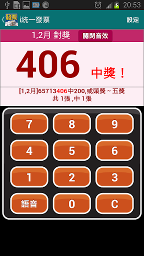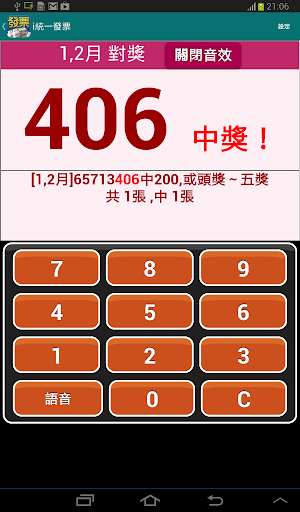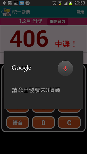 輸入發票末3碼,語音提示對獎,可離線一次對4個月的獎號.(語音提示可在設定中關閉)