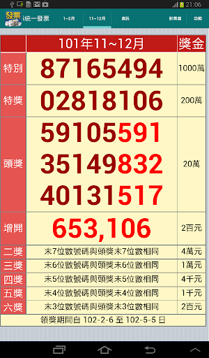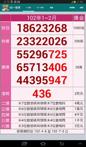 *程式內建最新完整離線對獎資訊,安裝完即可對獎!