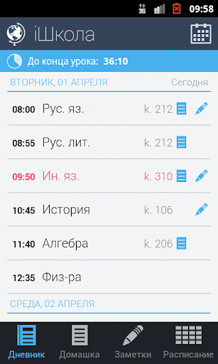 iШкола - это расписание + фотозаметки + фотографии домашнего задания с доски.